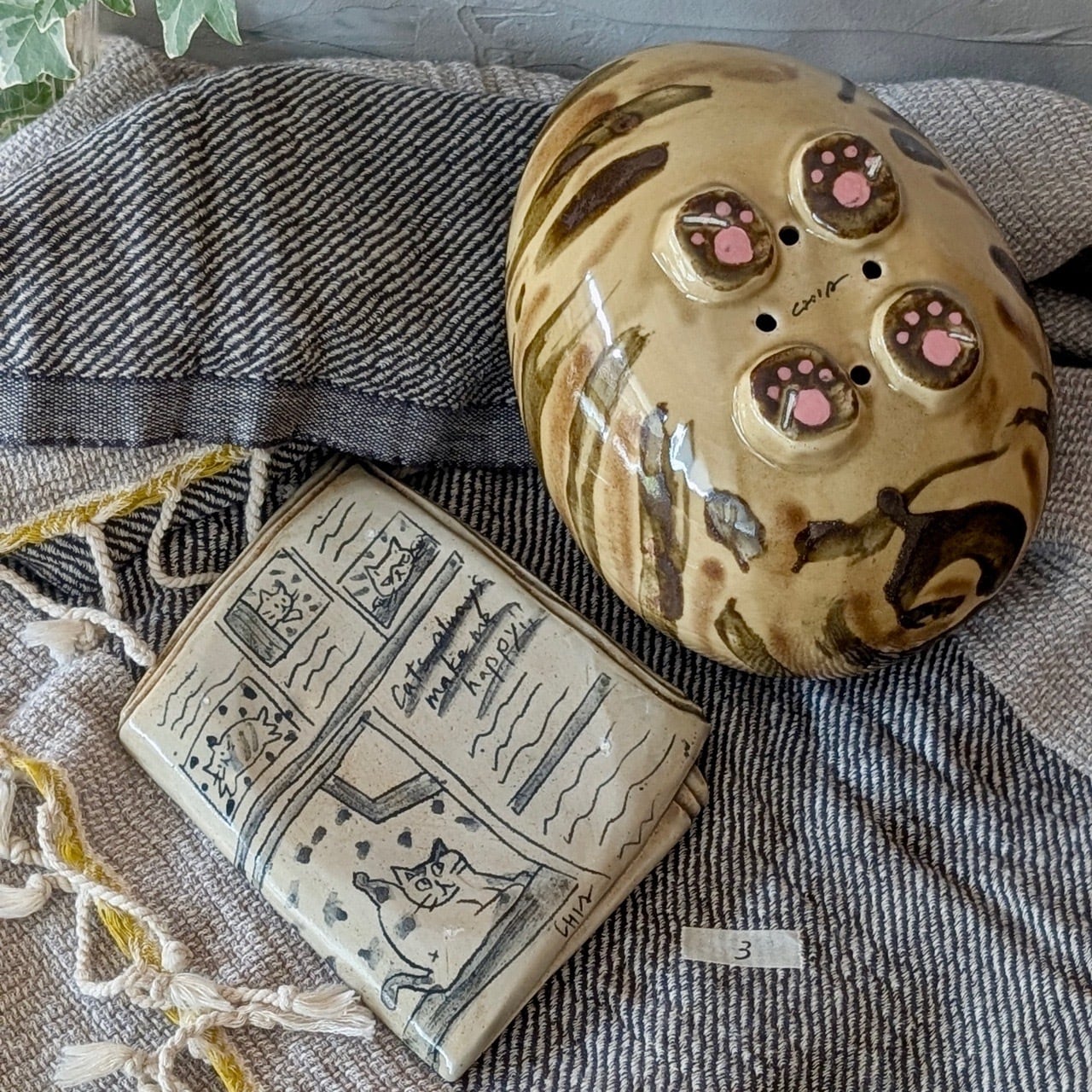 (※ねこたまママ本体、下皿には全体に釉薬かけるので目跡があります。)