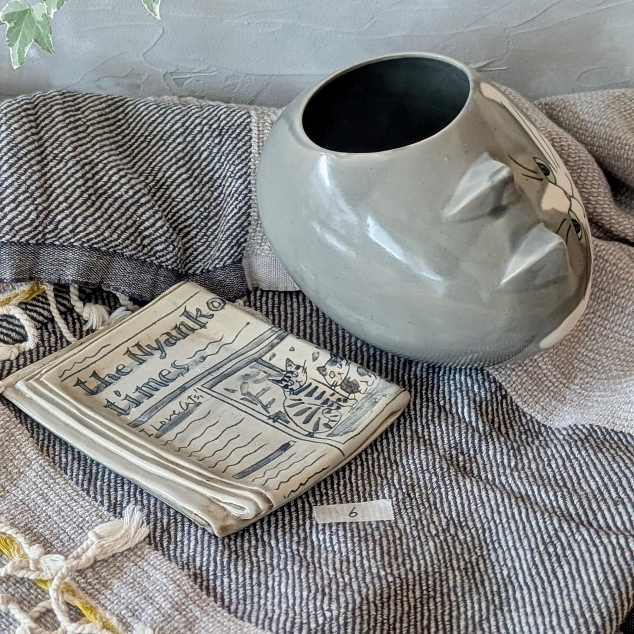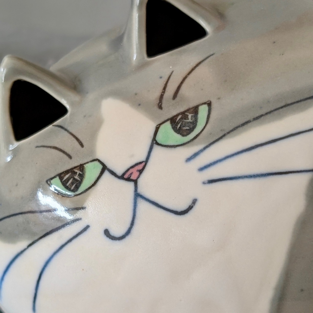 (※ねこたまママ本体、下皿には全体に釉薬かけるので目跡があります。)