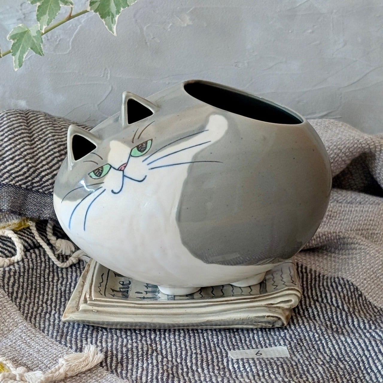 釉薬のムラ感が逆だった毛並みのように見えて可愛いです。