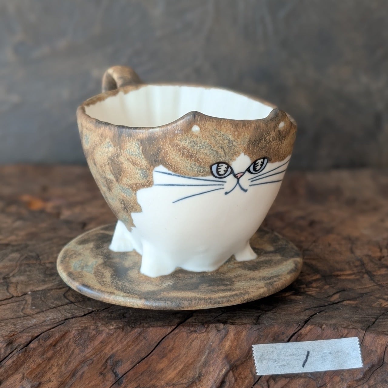 型制作で作ってます。抜いた生地個々に微妙な差もあり、ドリップにゃんでのコーヒーの淹れ方はちょっと研究してもらうことになりますが、楽しんでもらえるフォルムになったと思います。