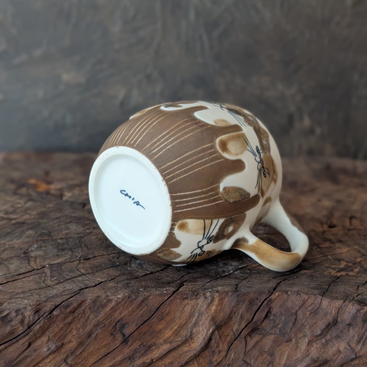 マットな白の釉薬の上に三毛模様を筆でラフにのせ、一見ちょっとドットっぽく見えるのがポイントです★