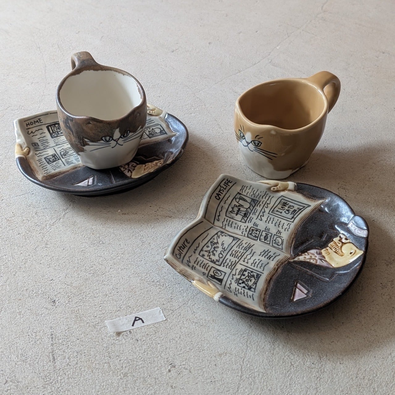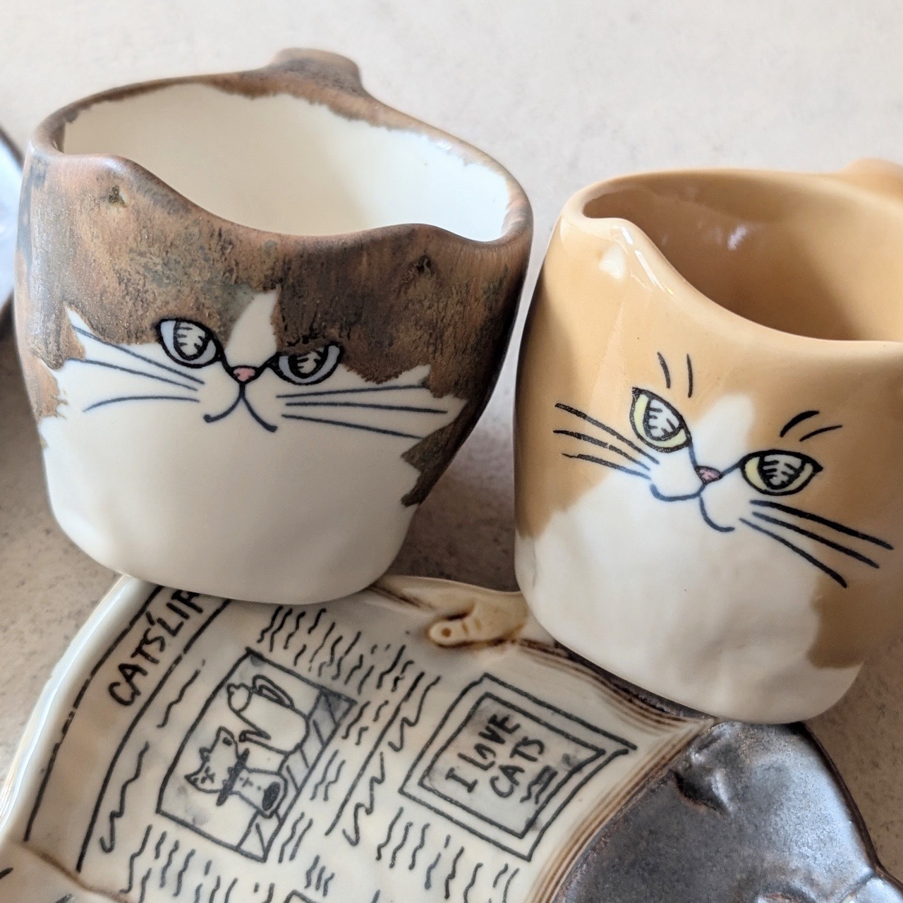 (※NOGAMIの好みでお皿も猫ちゃんの顔も異なる良い組み合わせに2客セットにしています。)