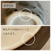 *鋳込み型成形の成形上の鋳込み口跡、型が合わさるラインがうっすらとあります。