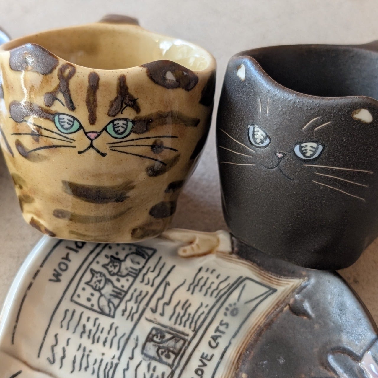 (※NOGAMIの好みでお皿も猫ちゃんの顔も異なる良い組み合わせに2客セットにしています。)
