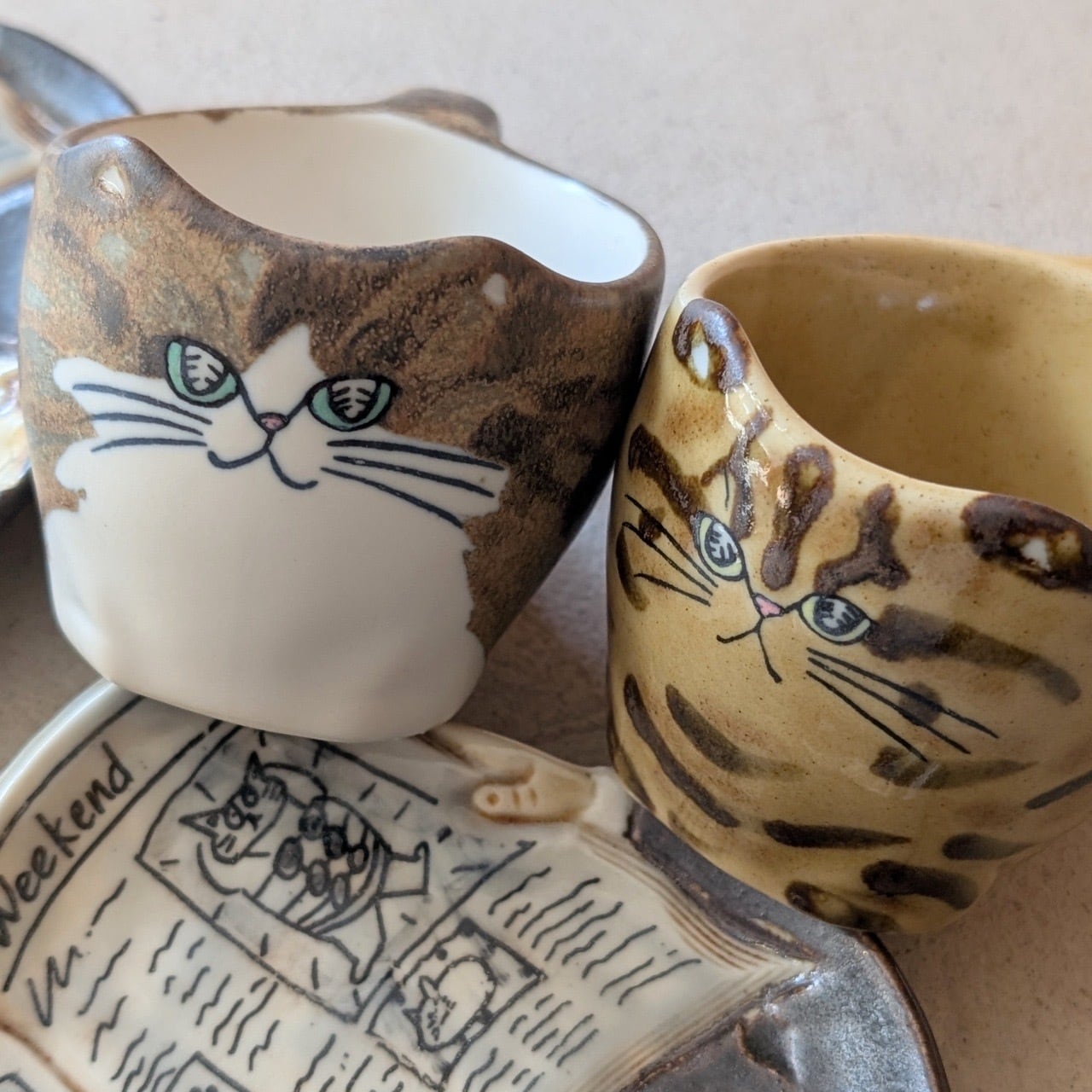 (※NOGAMIの好みでお皿も猫ちゃんの顔も異なる良い組み合わせに2客セットにしています。)