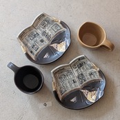 新聞を読むおじさまを”ワタシを愛でよ!!”と邪魔をする猫ちゃんの様子をモチーフにした器。