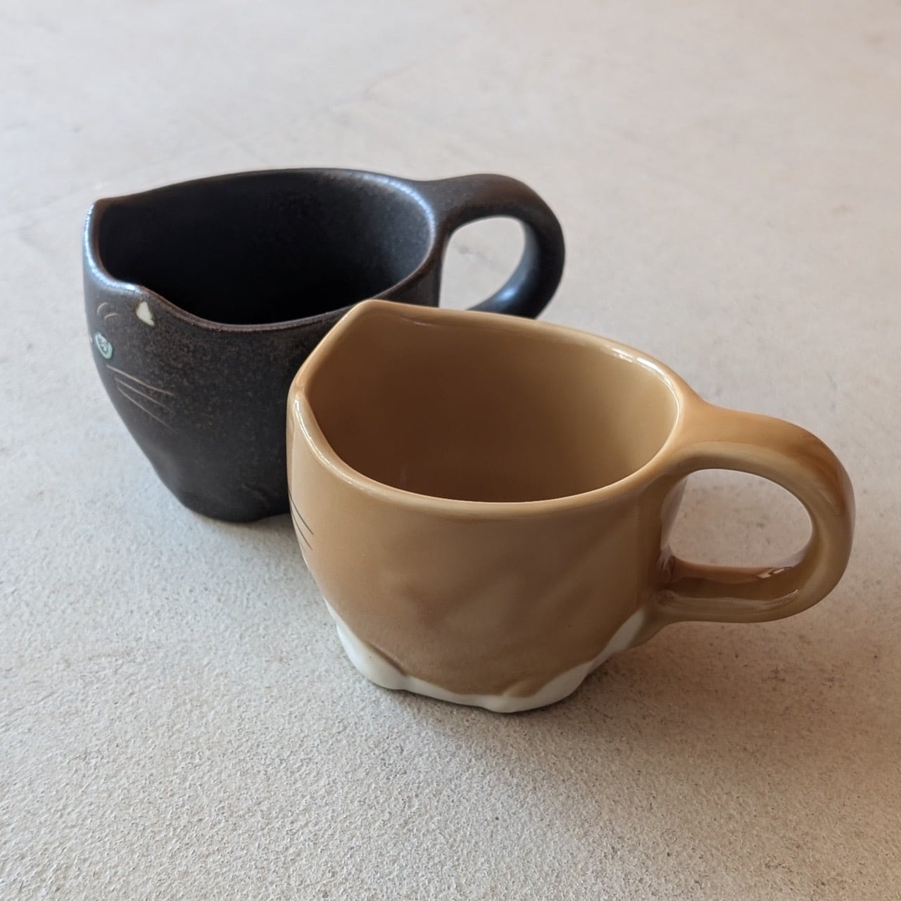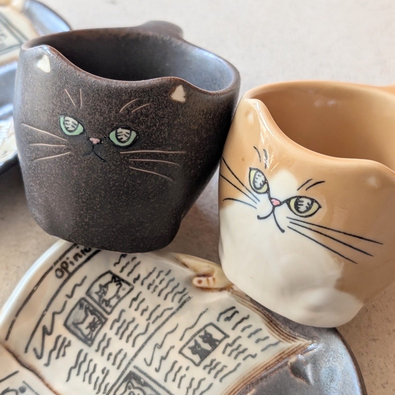 (※NOGAMIの好みでお皿も猫ちゃんの顔も異なる良い組み合わせに2客セットにしています。)