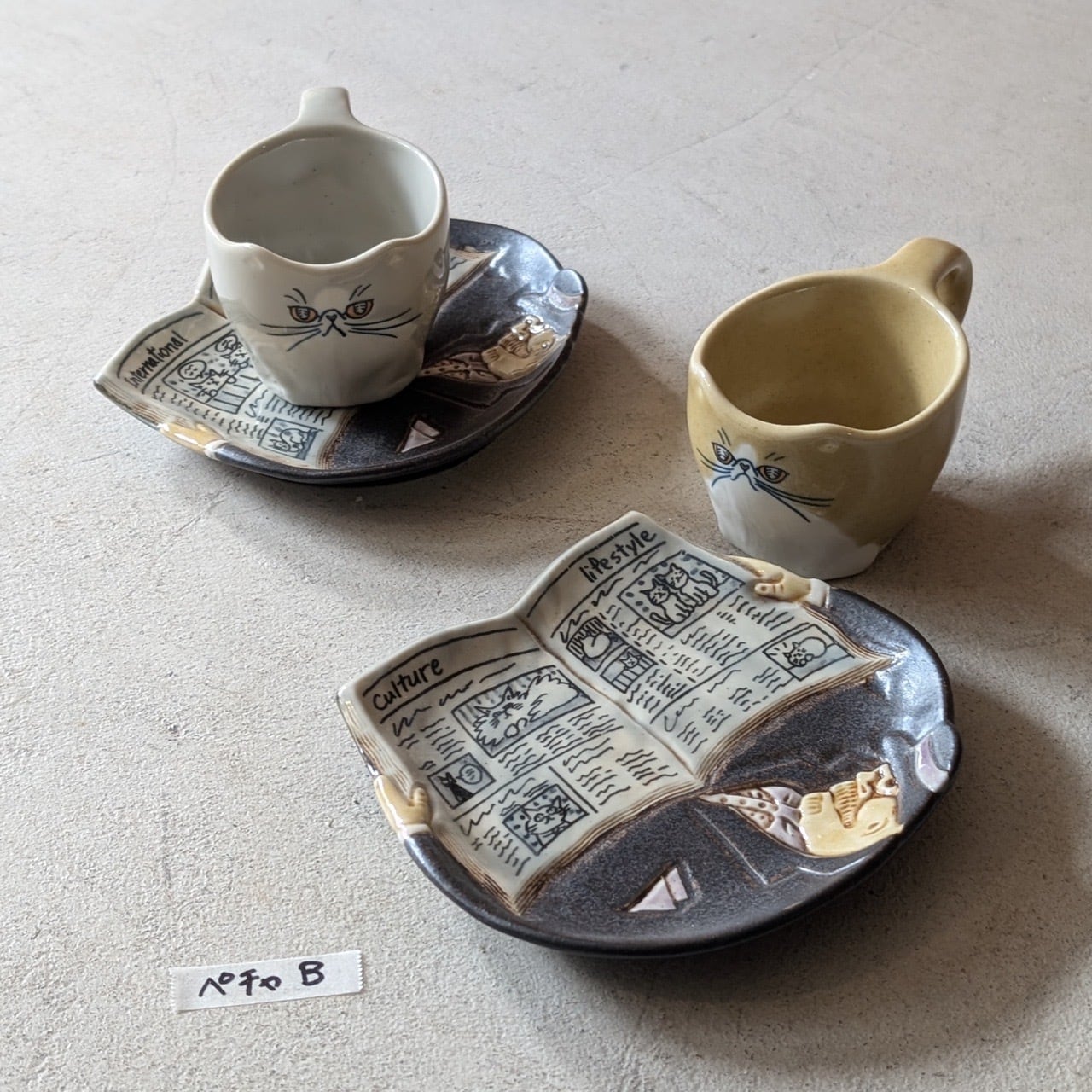 (※NOGAMIの好みでお皿も猫ちゃんの顔も異なる良い組み合わせに2客セットにしています。)
