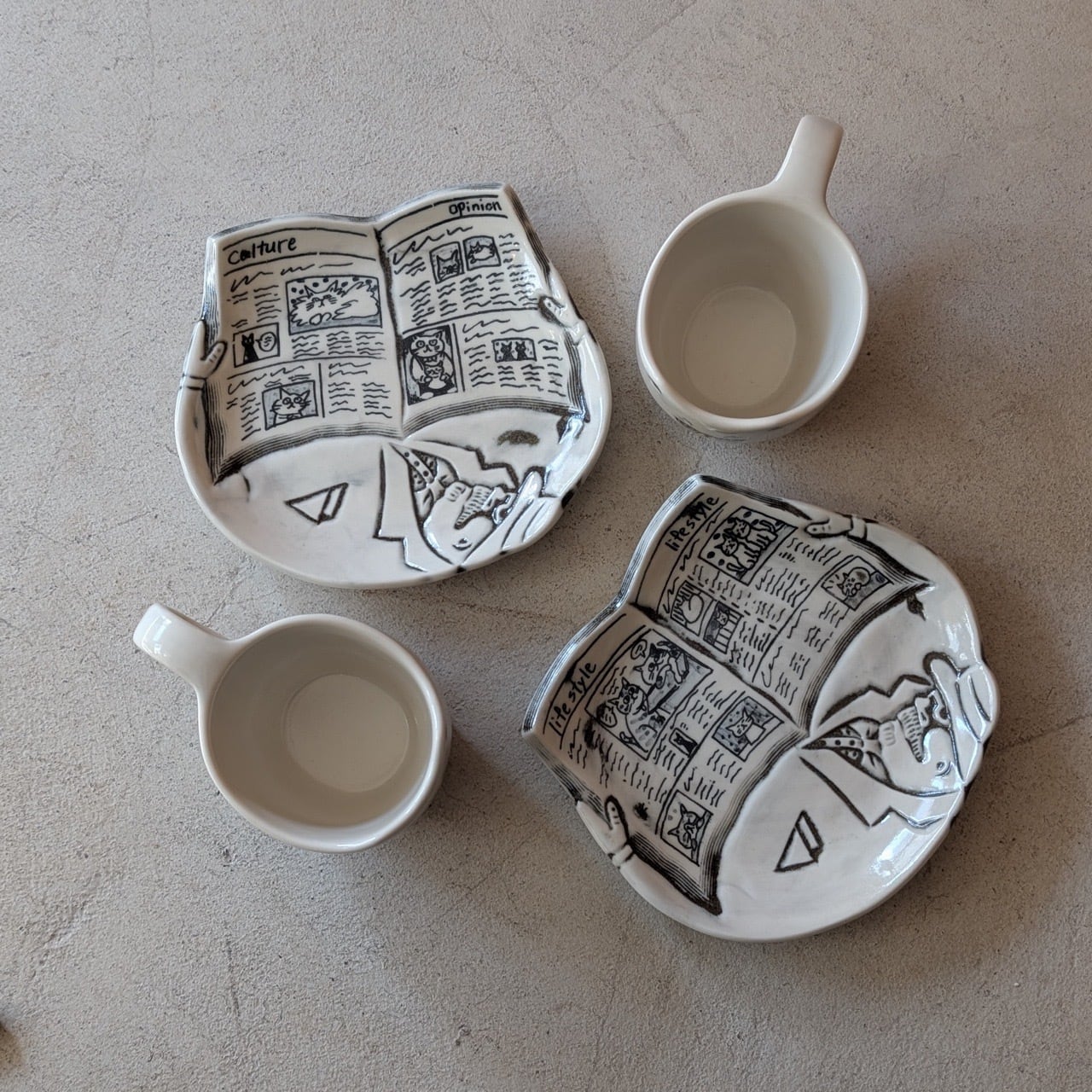 鼻ぺちゃ『モノトーン・ラブミー』/デミカップ&ソーサー2客