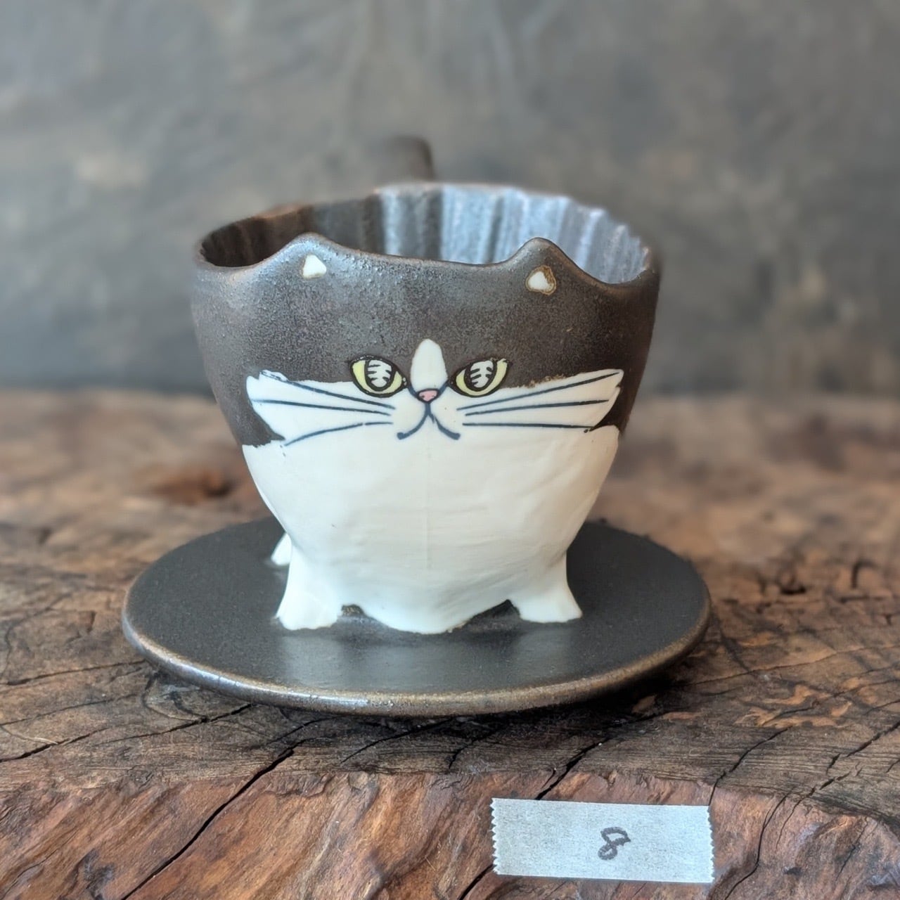 型制作で作ってます。抜いた生地個々に微妙な差もあり、ドリップにゃんでのコーヒーの淹れ方はちょっと研究してもらうことになりますが、楽しんでもらえるフォルムになったと思います。