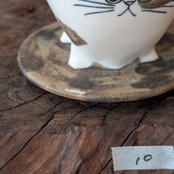 ・ドリップにゃんは型成形になるので、3〜5個の石膏型を合わせて作ります。各面の型の合わさるところで、顔面・尻尾にも線が薄ら見えるところがあります。