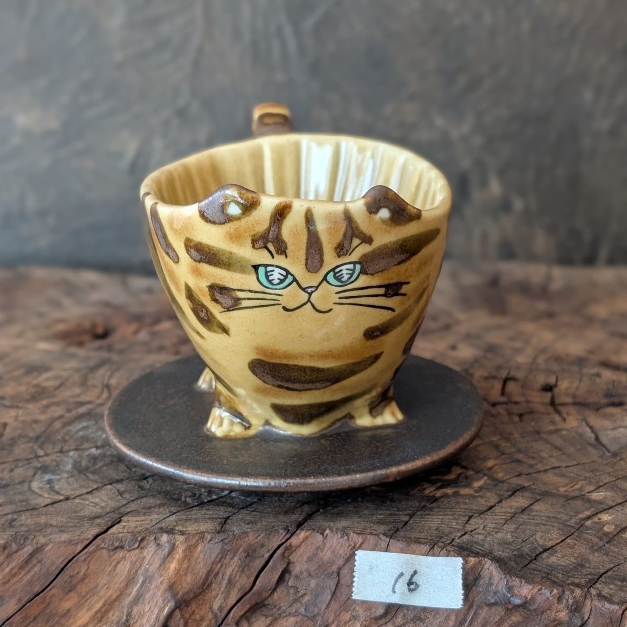 型制作で作ってます。抜いた生地個々に微妙な差もあり、ドリップにゃんでのコーヒーの淹れ方はちょっと研究してもらうことになりますが、楽しんでもらえるフォルムになったと思います。