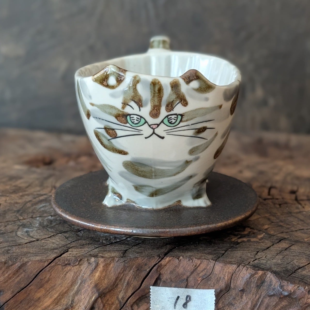 型制作で作ってます。抜いた生地個々に微妙な差もあり、ドリップにゃんでのコーヒーの淹れ方はちょっと研究してもらうことになりますが、楽しんでもらえるフォルムになったと思います。