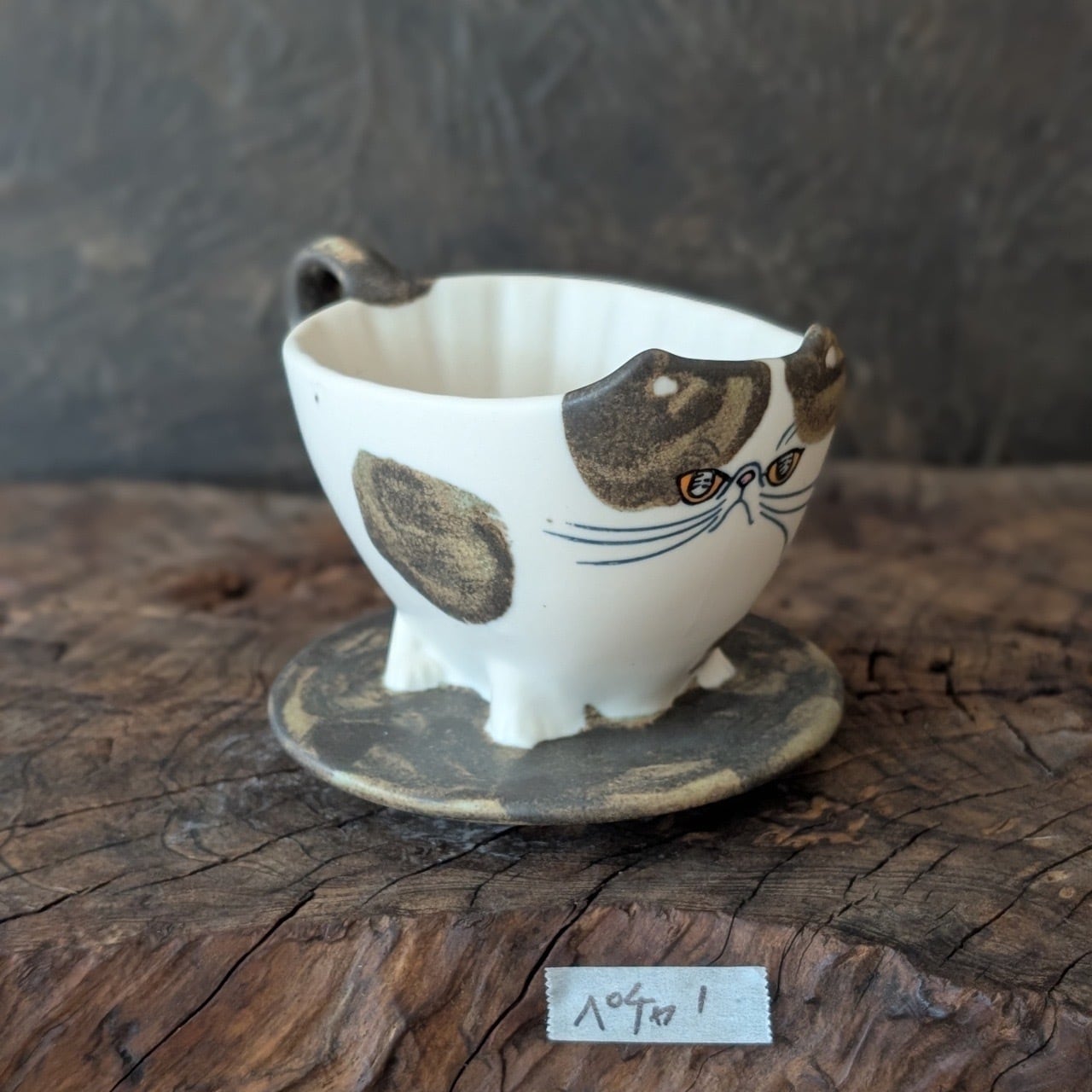型制作で作ってます。抜いた生地個々に微妙な差もあり、ドリップにゃんでのコーヒーの淹れ方はちょっと研究してもらうことになりますが、楽しんでもらえるフォルムになったと思います。