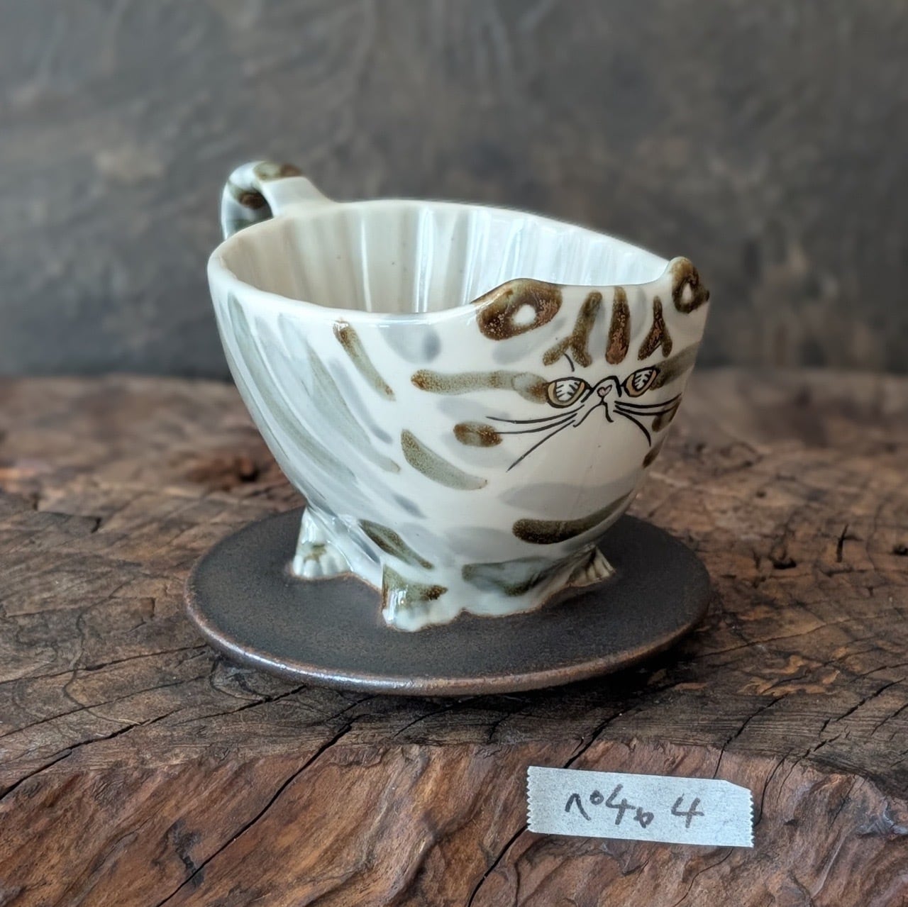 こちらは、グレーのトラ猫ちゃん。3種類の釉薬をかけています。