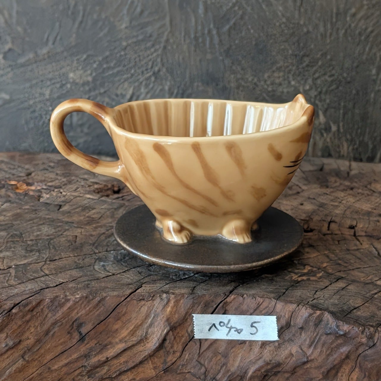 型制作で作ってます。抜いた生地個々に微妙な差もあり、ドリップにゃんでのコーヒーの淹れ方はちょっと研究してもらうことになりますが、楽しんでもらえるフォルムになったと思います。