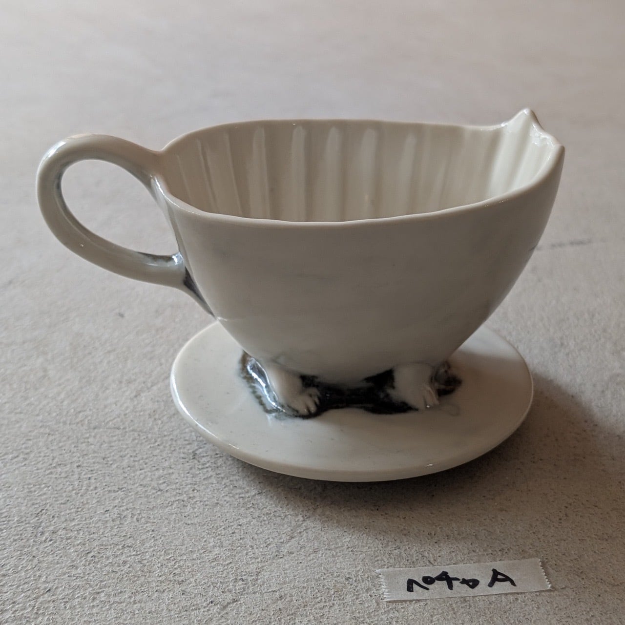 型制作で作ってます。抜いた生地個々に微妙な差もあり、ドリップにゃんでのコーヒーの淹れ方はちょっと研究してもらうことになりますが、楽しんでもらえるフォルムになったと思います。